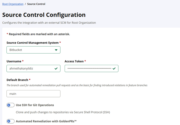 Sonatype tarafında source control entegrasyon ayarları organizasyon seviyesinde yapılmaktadır. Farklı organizasyonlar için farklı entegrasyonlar yapılabilir. Örneğimizde Root Organization için yapıyoruz.